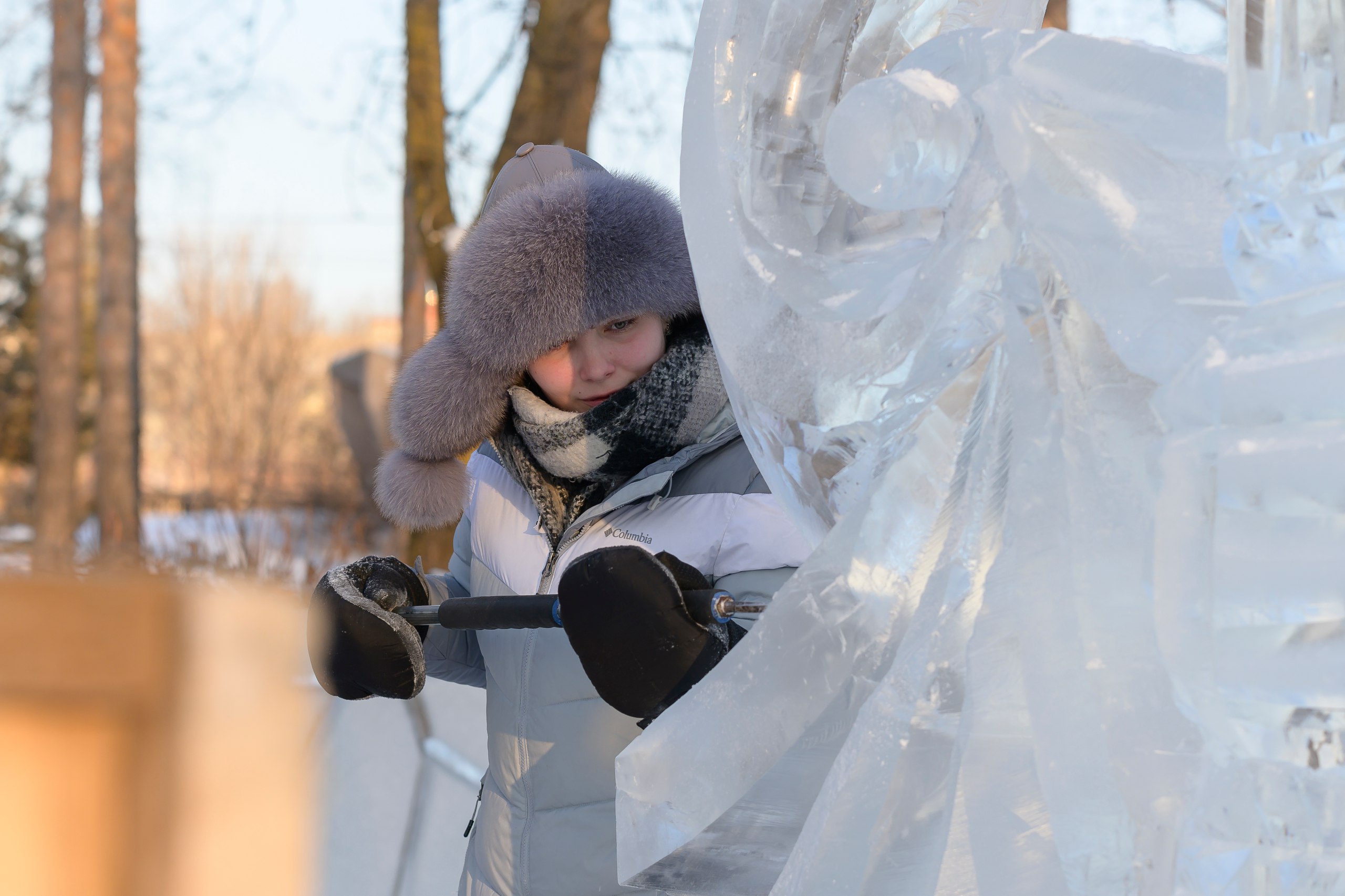 Четыре дня скульпторы вырезали ледяных героев сказок из уникальных блоков. Каждый блок имел свои особенности: вмёрзшие рыбки и причудливые трещины. Погода была благоприятной — не было сильного ветра и мороза, что позволило работать над деталями.😊